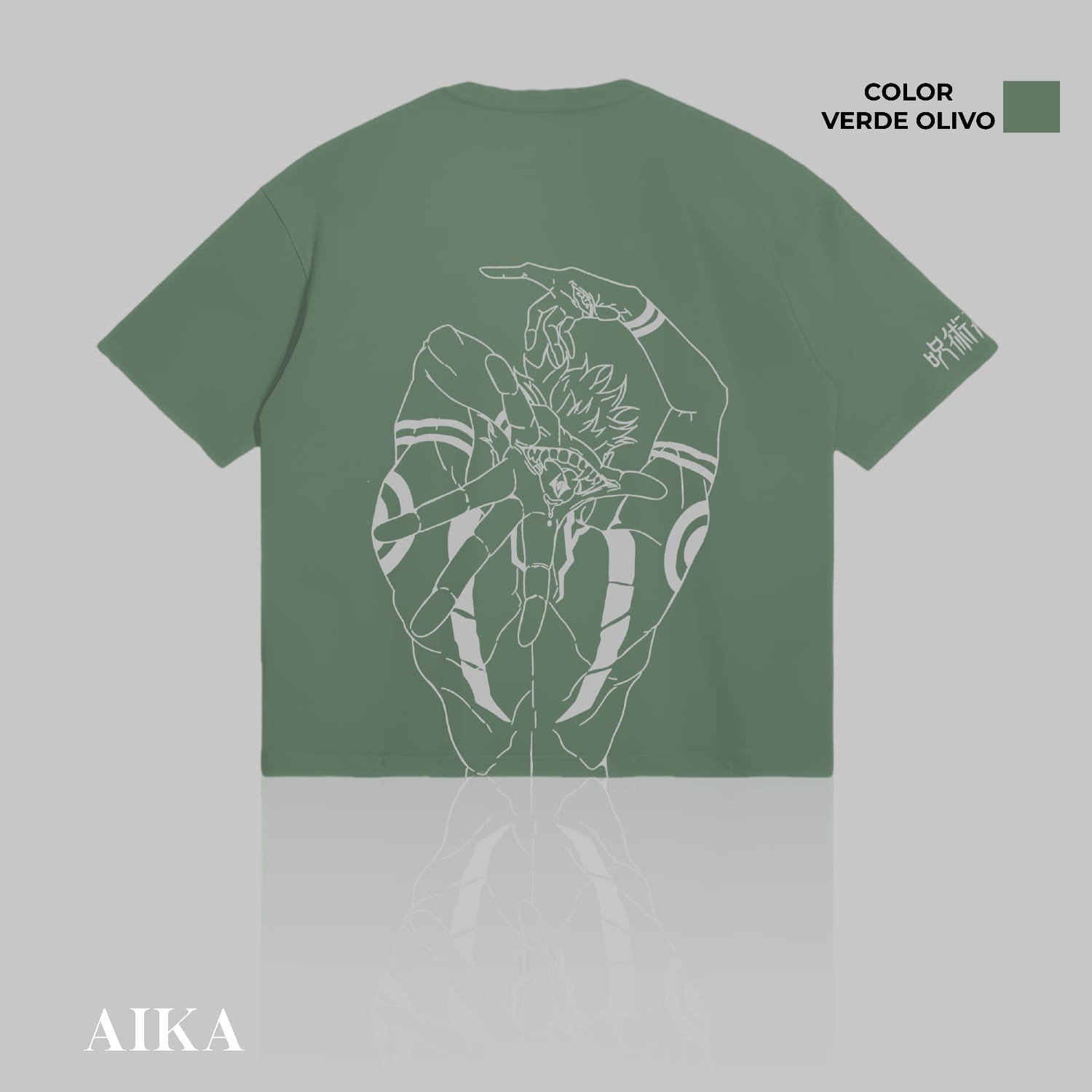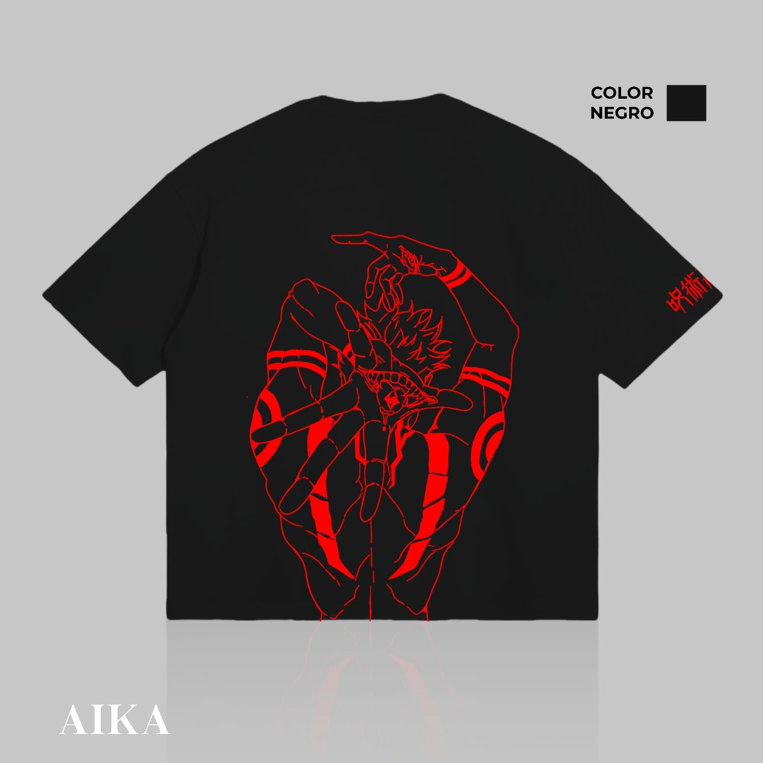 Polo negro con diseño exclusivo de Sukuna de Jujutsu Kaisen, perfecto para mostrar fortaleza.